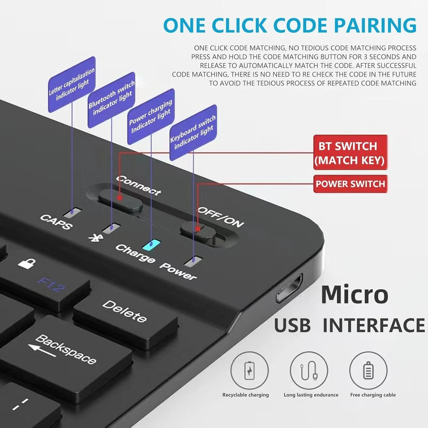 Bluetooth Keyboard Ultra-Slim | Wireless Rechargeable USB-C | UK Layout