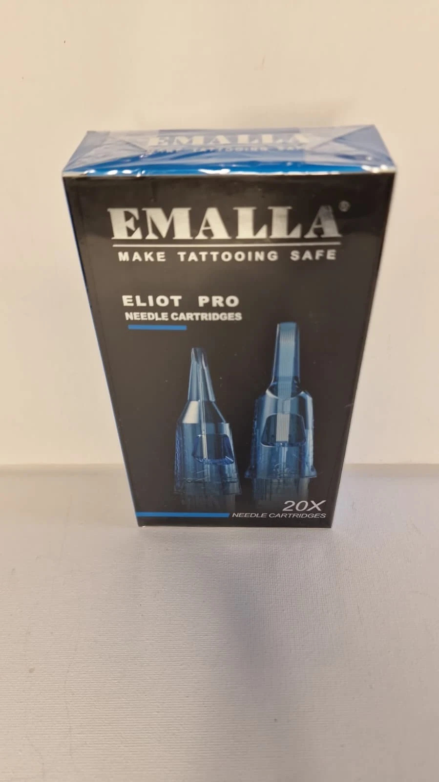 Pack of EMALLA tattoo needle cartridges (20 pieces) suitable for compatible cartridge tattoo machines. Designed for smooth ink flow and consistent performance during tattoo work.